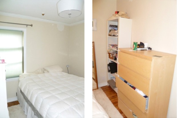 I hate that window! There is another window on the adjacent wall, not shown in the photos, that actually streams light in the morning. The window shown in the picture just gets in the way of centering anything on the wall. My plan is to board it up, and run floor to ceiling white curtains along the whole wall, giving it a relaxed, light, airy feel! I just bought the night stands, and will have those built, painted, and stained soon! As much as I hate all the rain that we have been getting, it’s a good way to keep me indoors finishing our room!