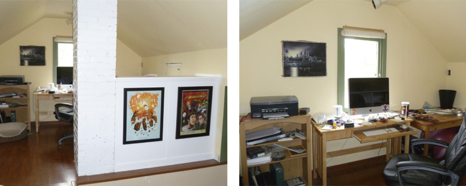 There is so much wasted space under the desk and table that are there now. In my perfect world, with all the cash I need, I would do this…