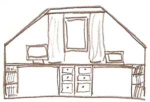 It would look so great, a desk extending from wall to wall, with a combination of drawers and shelves…but the good news is that it looks simple enough, that I think that I can make something similar!