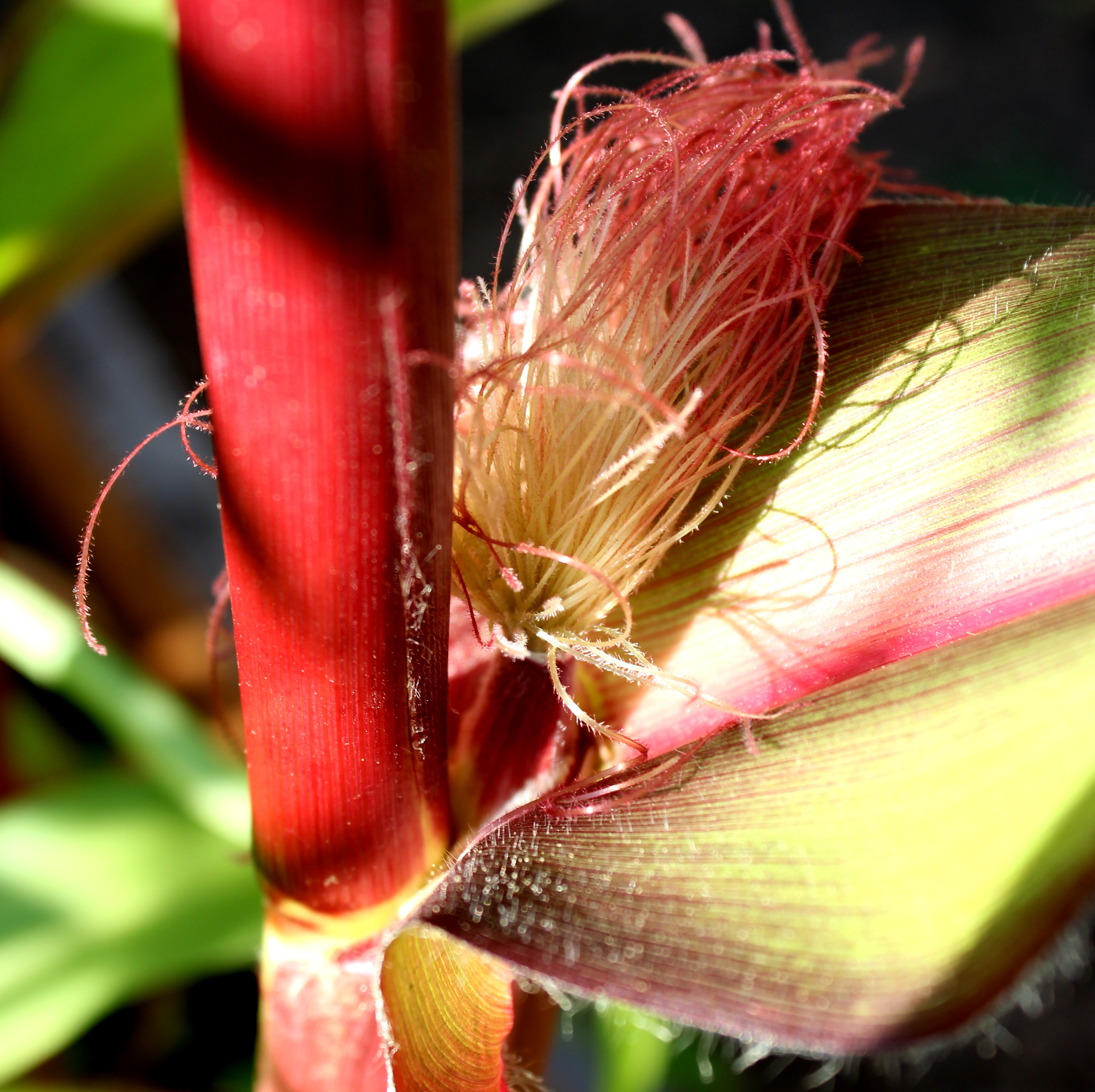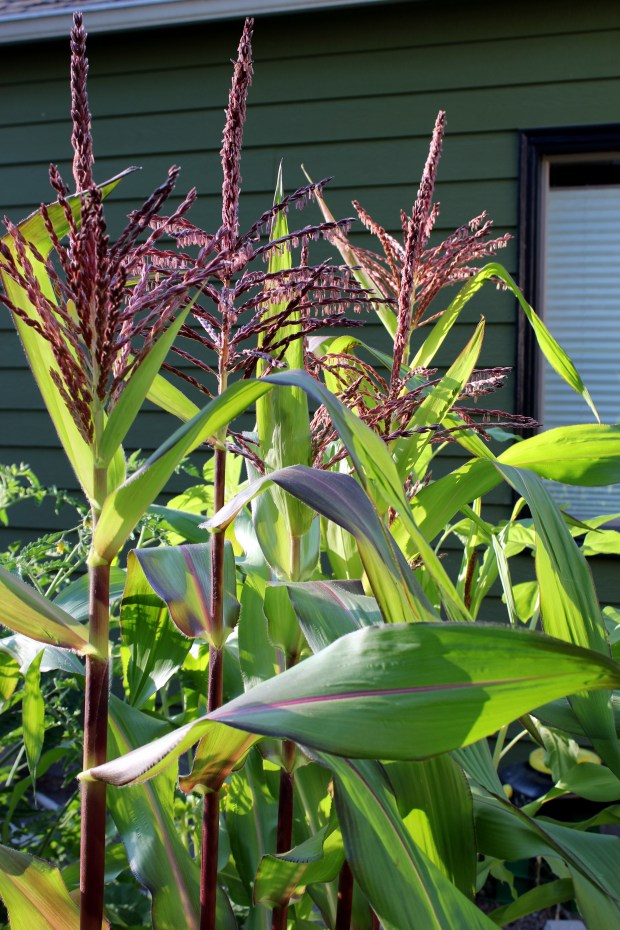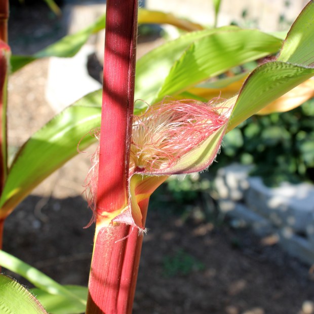 I thought the corn was pretty fascinating.  The stocks are just leaves, and then at the top they grow a tassel (which is male, obvi!: )  And then over a few weeks, the pollen from the tassels falls/blows off and lands where the large leaves meet the stock, and then suddenly the corn starts to emerge.  And turns out the ear is female!  Who knew?