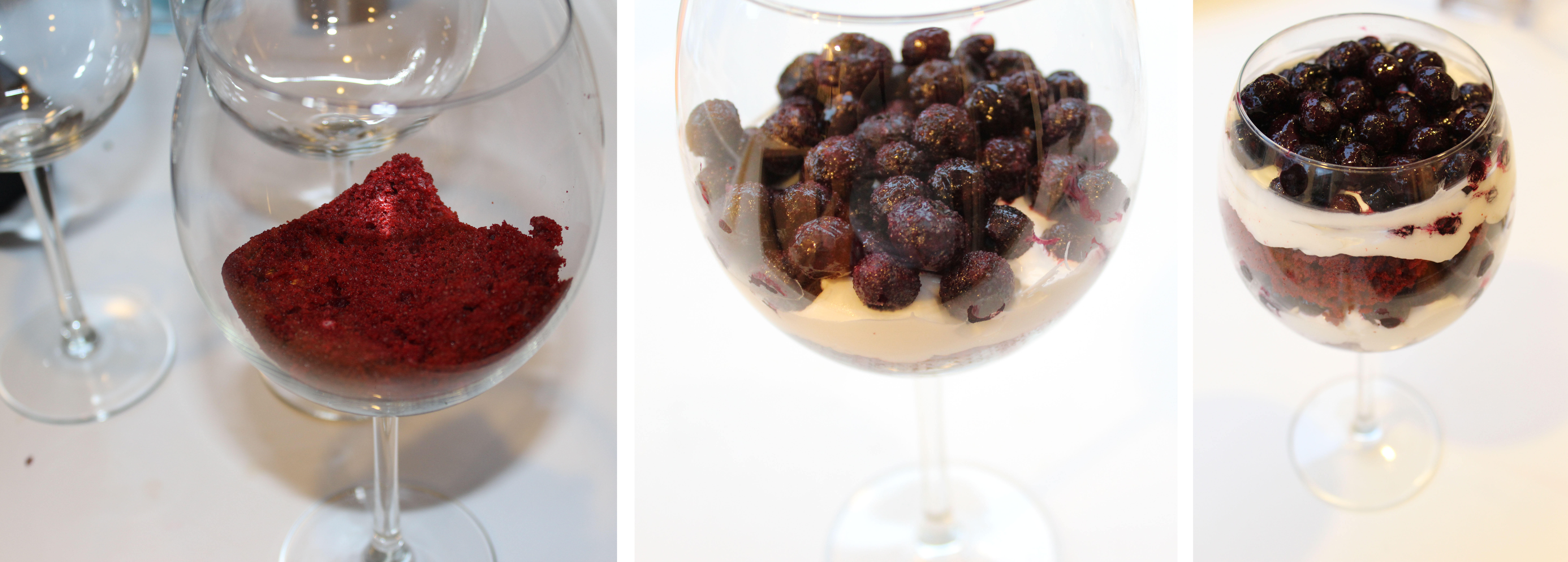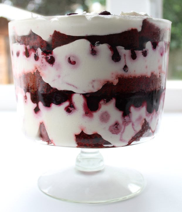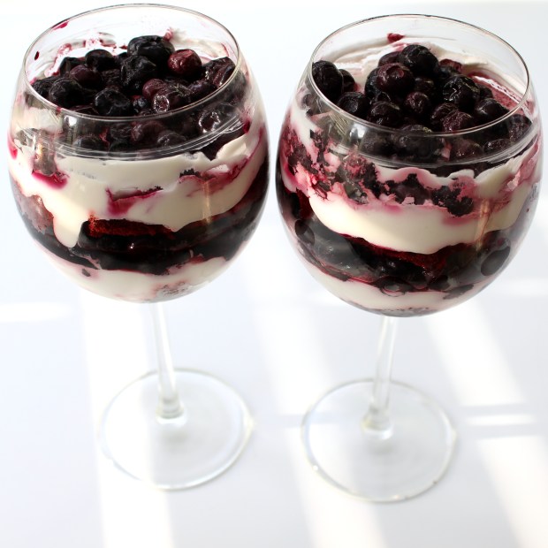 For example – I was supposed to go to a dinner party, which got cancelled day of, and I had already made the red velvet cake. A girlfriend and I decided we would just dinner and catch up, so it wasn’t necessary to make a whole trifle. Instead I broke out the red wine glasses and made personal trifles!