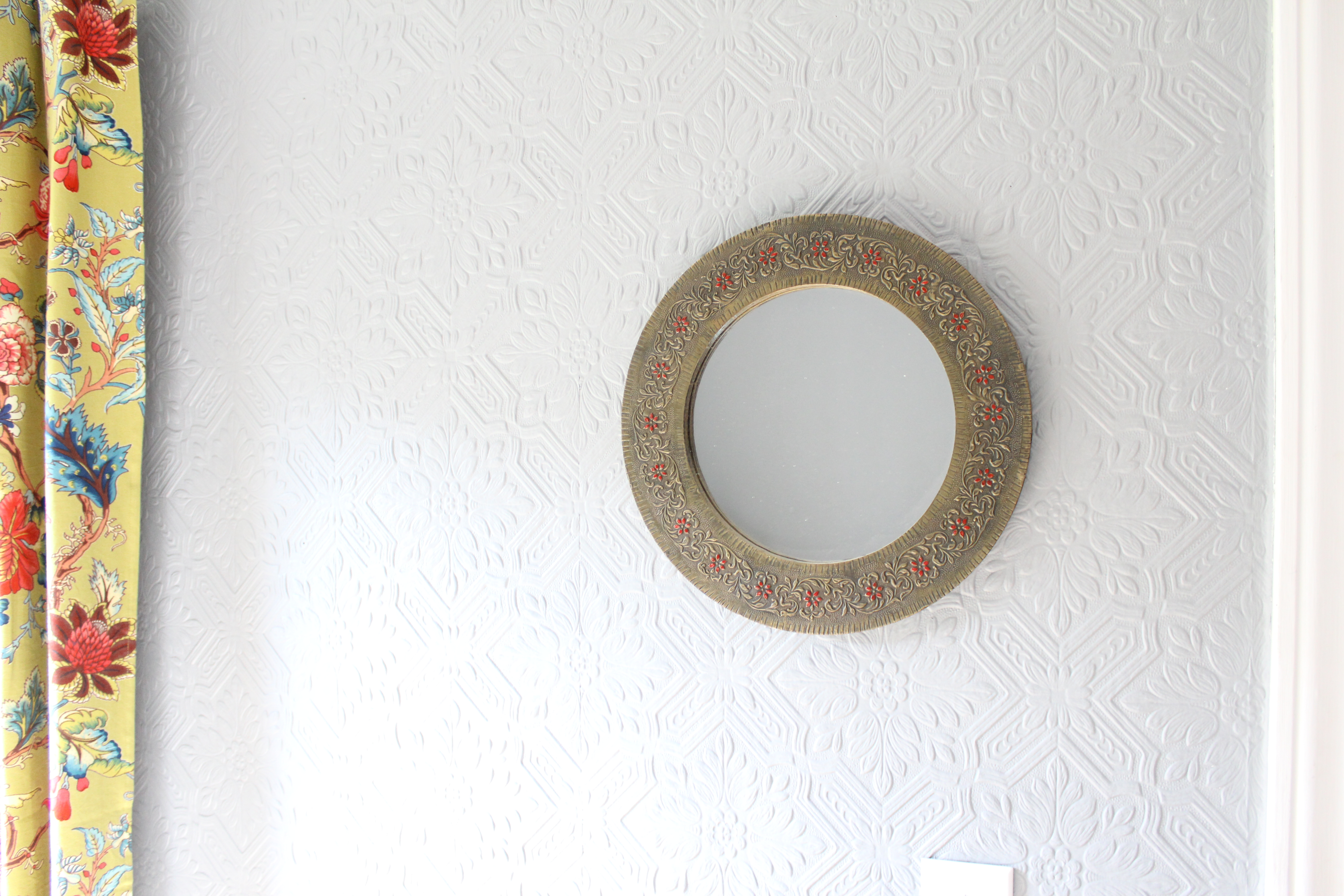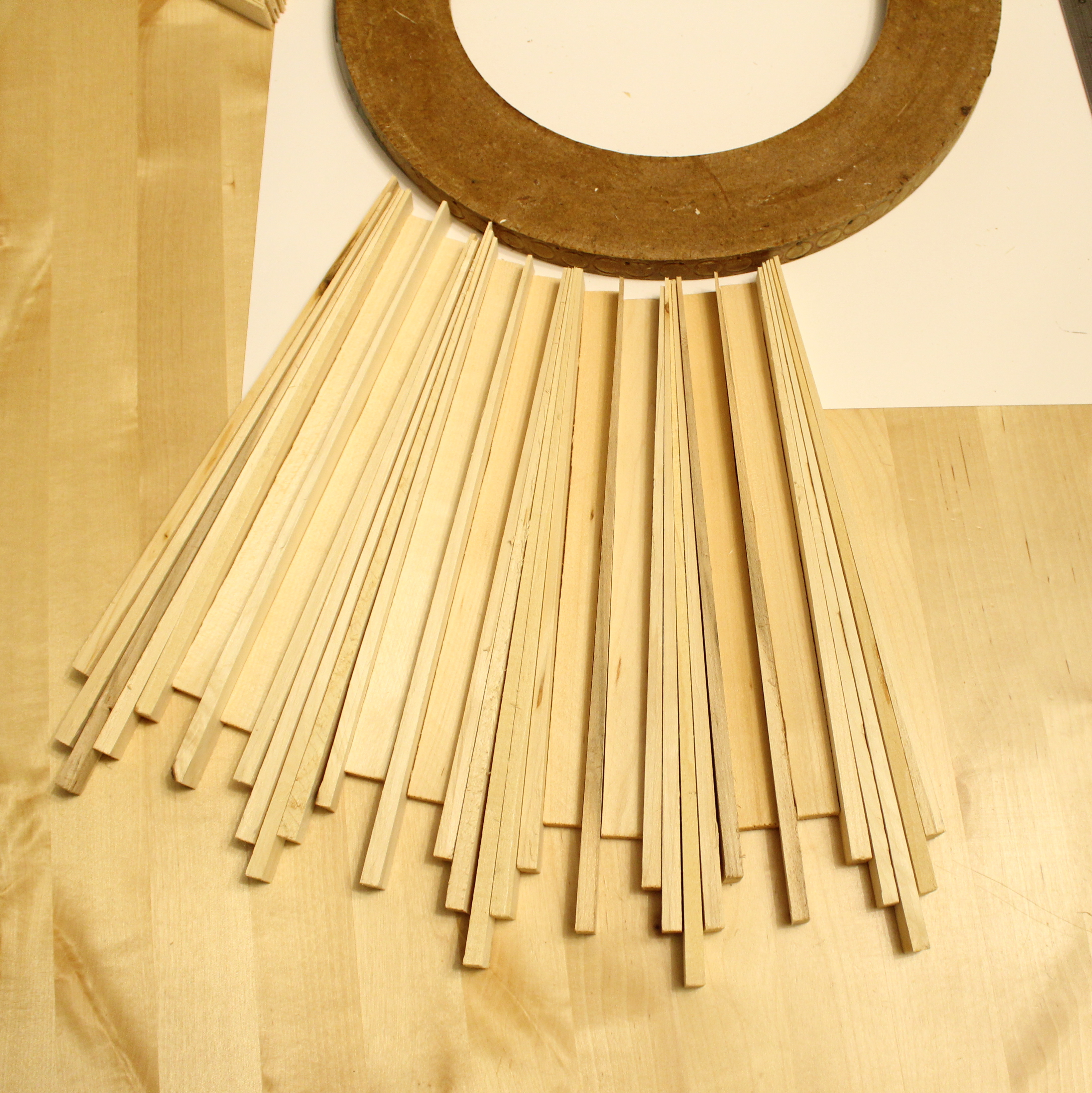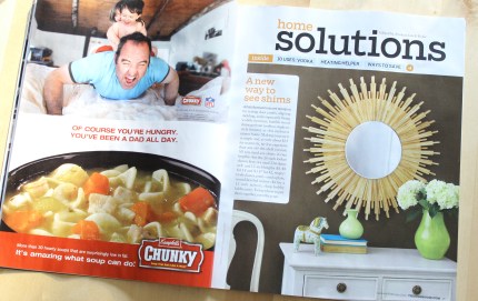 A few months ago (and by a few I mean 6…I just don’t want to admit it was that long ago) I was at the hardware store and spotted a package of wood shims. I immediately thought to myself that they would make the perfect rays for a star burst mirror. I’ve been dying to DIY a large sunburst mirror for the dining room. I’ve seen a bunch with twigs, but wanted to come up with something different, and I thought this was it! My original idea! But of course that was months ago. Finally this week I pulled them out thinking I could pump this project out! I also had a round mirror that I had purchased from IKEA when I was in college. It’s cute enough, but definitely would look better as a star burst.