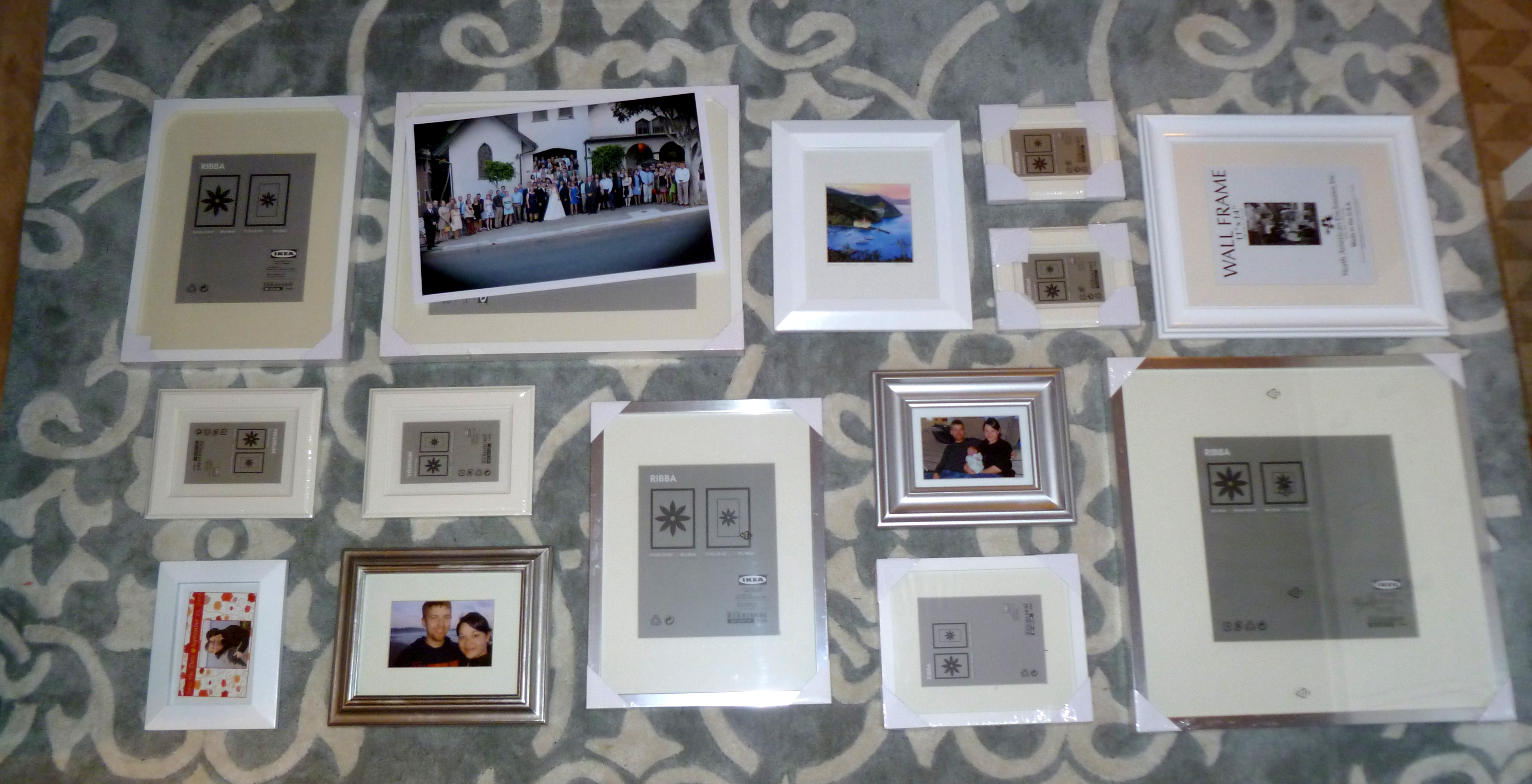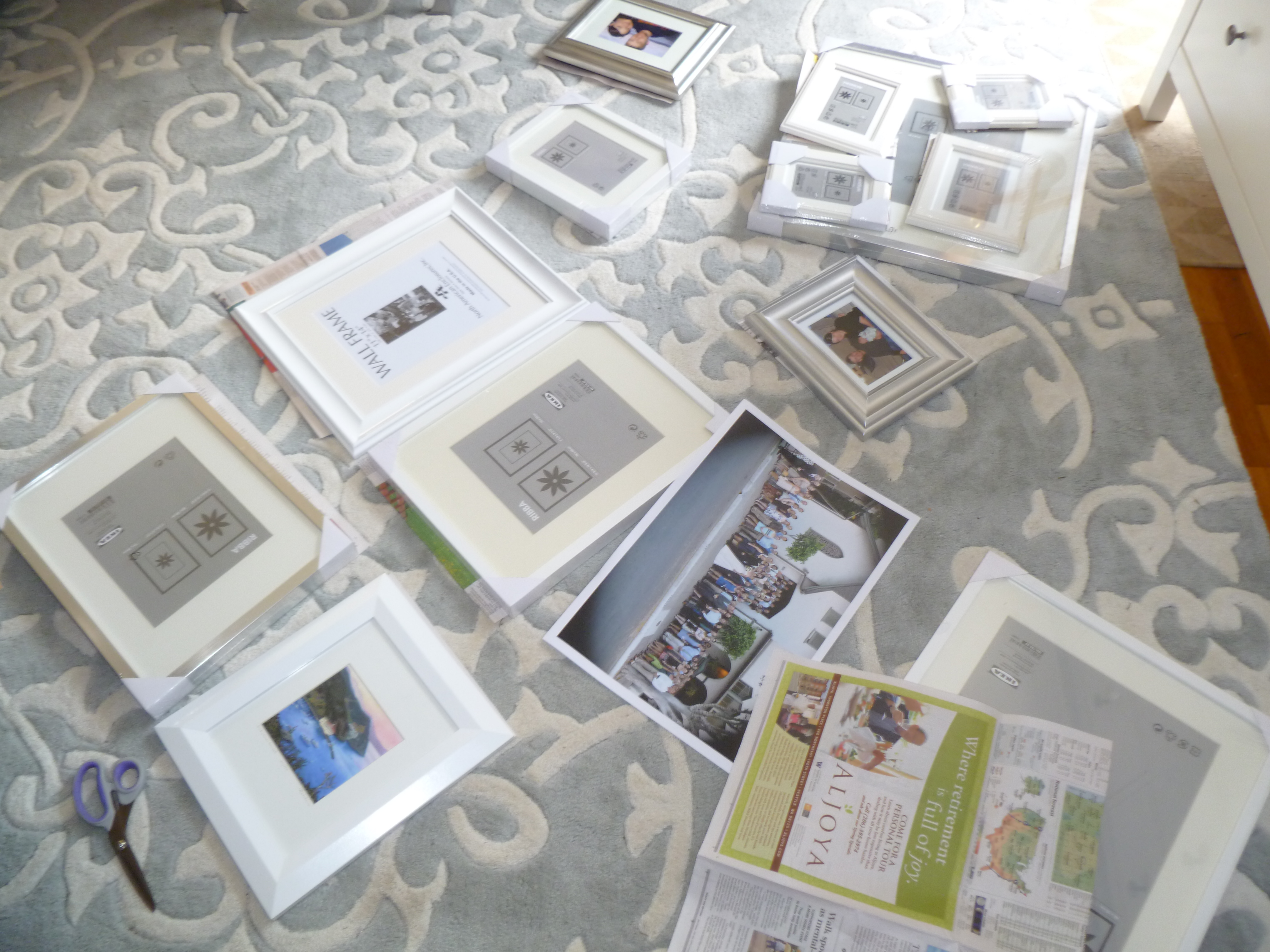 I started by laying out all the frames on the floor.  It took a few different layouts to get get one that I liked…something balanced, but not too balanced.  This is the one I landed on.