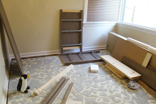 I’m sure you recognize the boxes…IKEA!  I love putting together ikea furniture.  I had a nice cup of coffee, sat in the middle of the room, and  assembled a dresser and shelf all day.  And once it was finished…