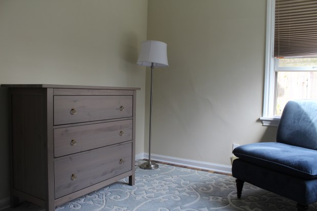 And the dresser.  Initially I was thinking of putting the crib in that corner, but now thinking that I will put the shelf there and the crib where the shelf is.  I haven’t bolted anything to the walls yet luckily.  I will do that once the arrangement makes sense.  The room is very tight.  I moved in the chair and suddenly thought if we have this chair we can’t have a crib.  But I think if we rearrange the shelf and crib it will work.  I still don’t have a crib :)  One of these days.