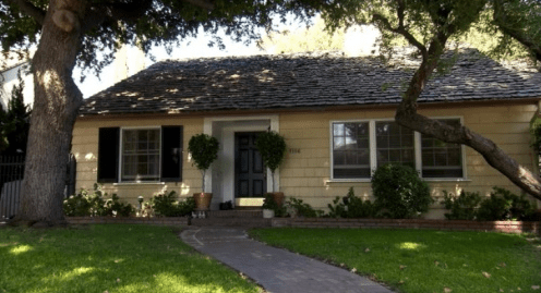 And then here is the house minus the little glass “covered thing.” It’s a porch…I don’t know what to call it. Since this picture was taken, we have removed the TV satellite dish, and the little magnolia that we planted has died and still needs to be removed. Originally I planted the bamboo with the hopes that it was going to grow tall and distract from the blank walls, but they have just gotten bushier…not taller. Go figure!