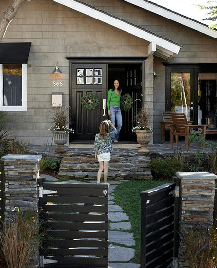 This one I love the dark trim. Originally I was hoping to have white trim, but since our trim is already dark navy black (Jesse and I argue over what color the trim is. I say dark blue, he says black. It’s clearly dark dark blue:) And we are only replacing the trim around the front windows, it seems like it will make life easier if we keep the dark trim. Otherwise we would have to paint all the trim on the back 3 sides of the house AND the garage, going from nearly black to white which doesn’t sound appealing!