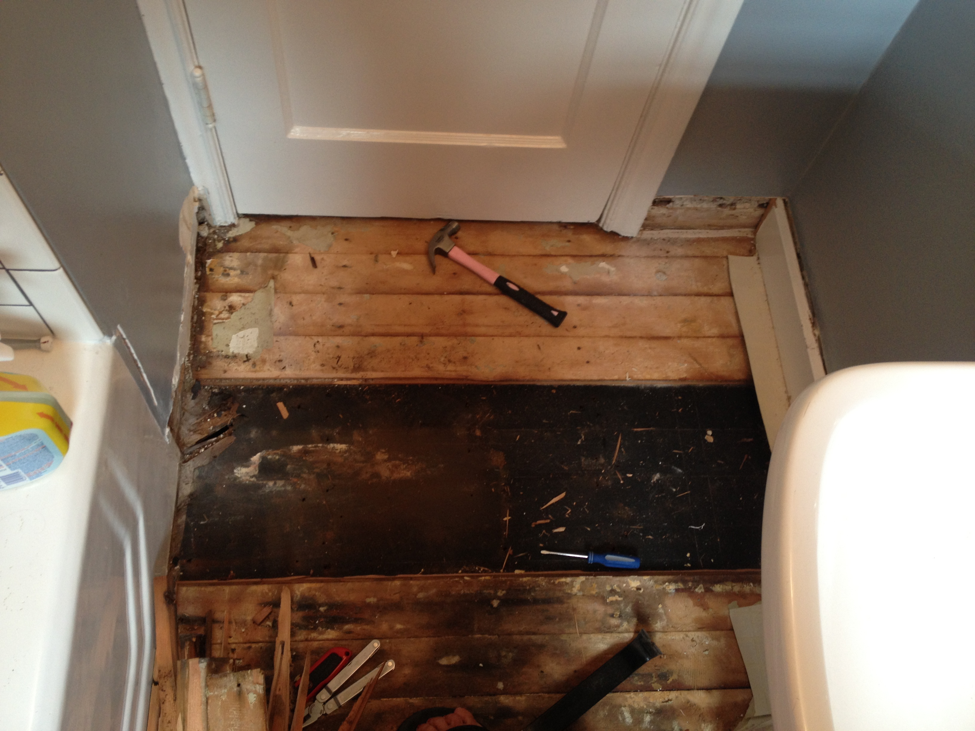 So, then next step was to see what surprises laid under the top layer of subfloor.