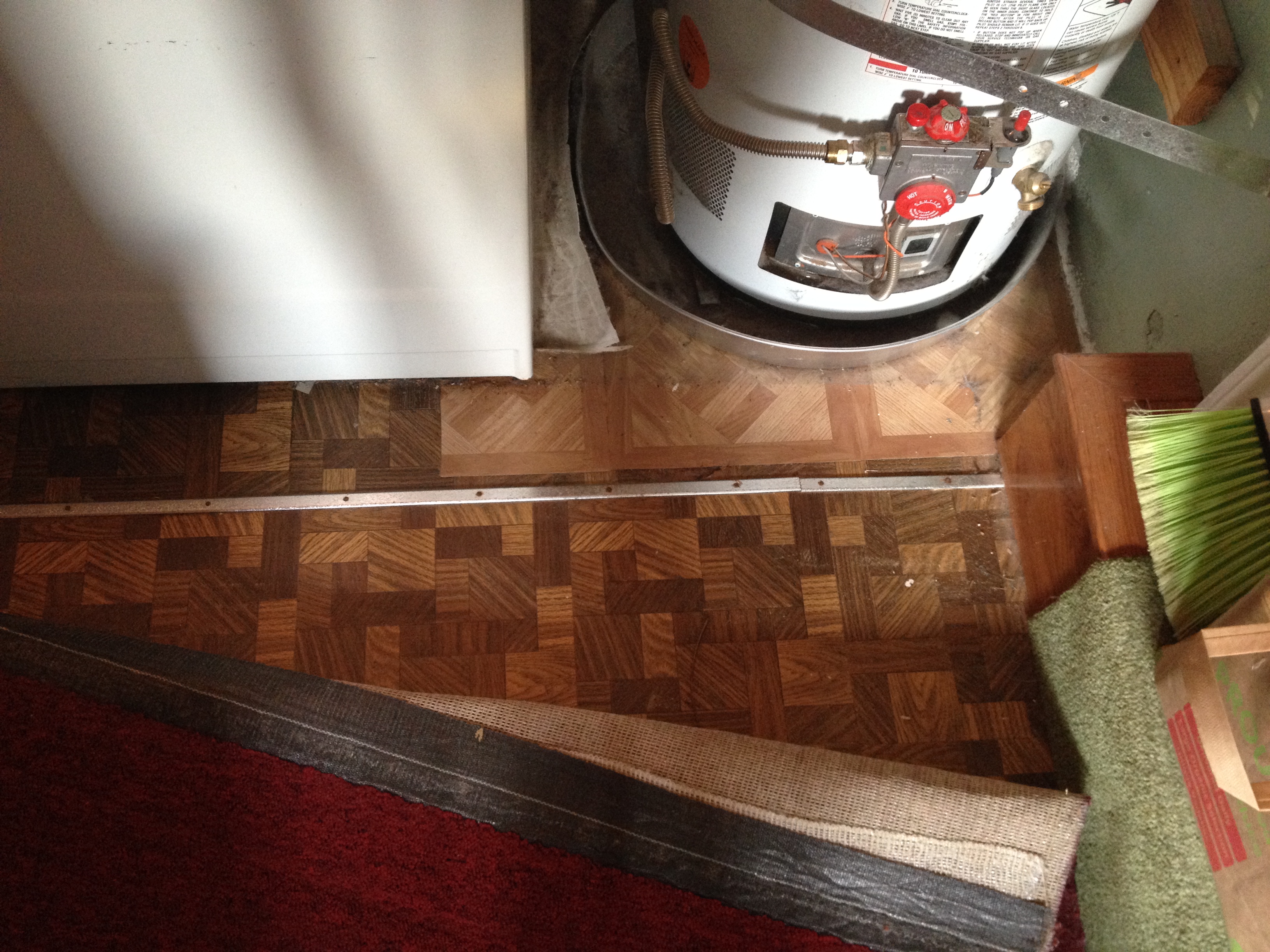 My hope was that we’d be able to choose when we were going to replace the washer and dryer because I’d really like to re vamp the laundry hall a bit, especially the flooring. So, remember how in my previous post I mentioned how good I am at abandoning one project to work on another…well…meet the laundry room floor. A room that I’ve tried to keep out of the blog – it’s a bit ugly.