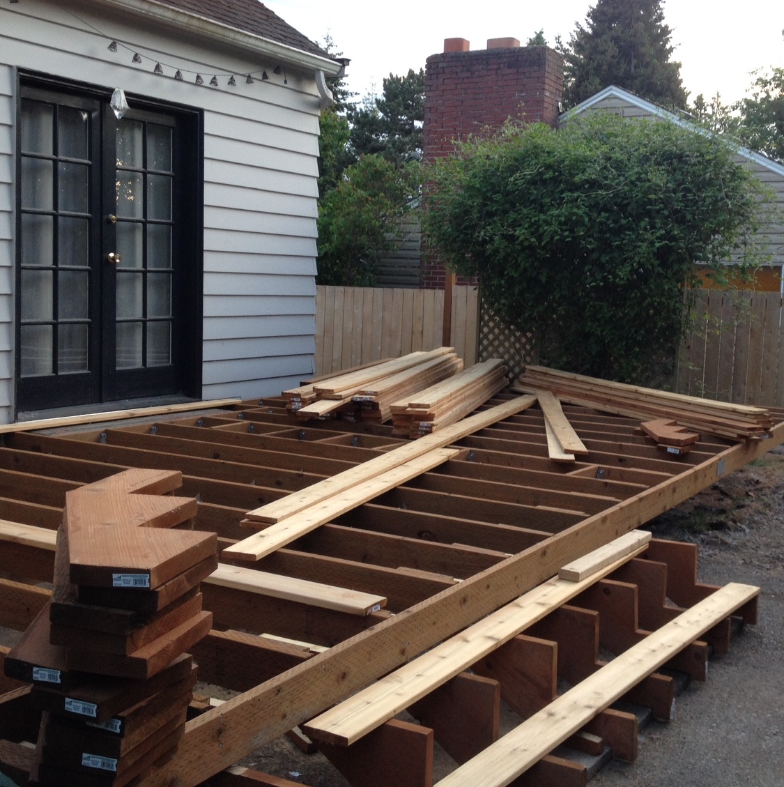 We are about 70% of the way through out deck. We have all the joists in and are working on the stair treads. They have become a huge pain. It’s been so tempting to stop the stairs where they are, but I just keep envisioning full steps down to the yard…I keep having to remind myself how wonderful it will be!