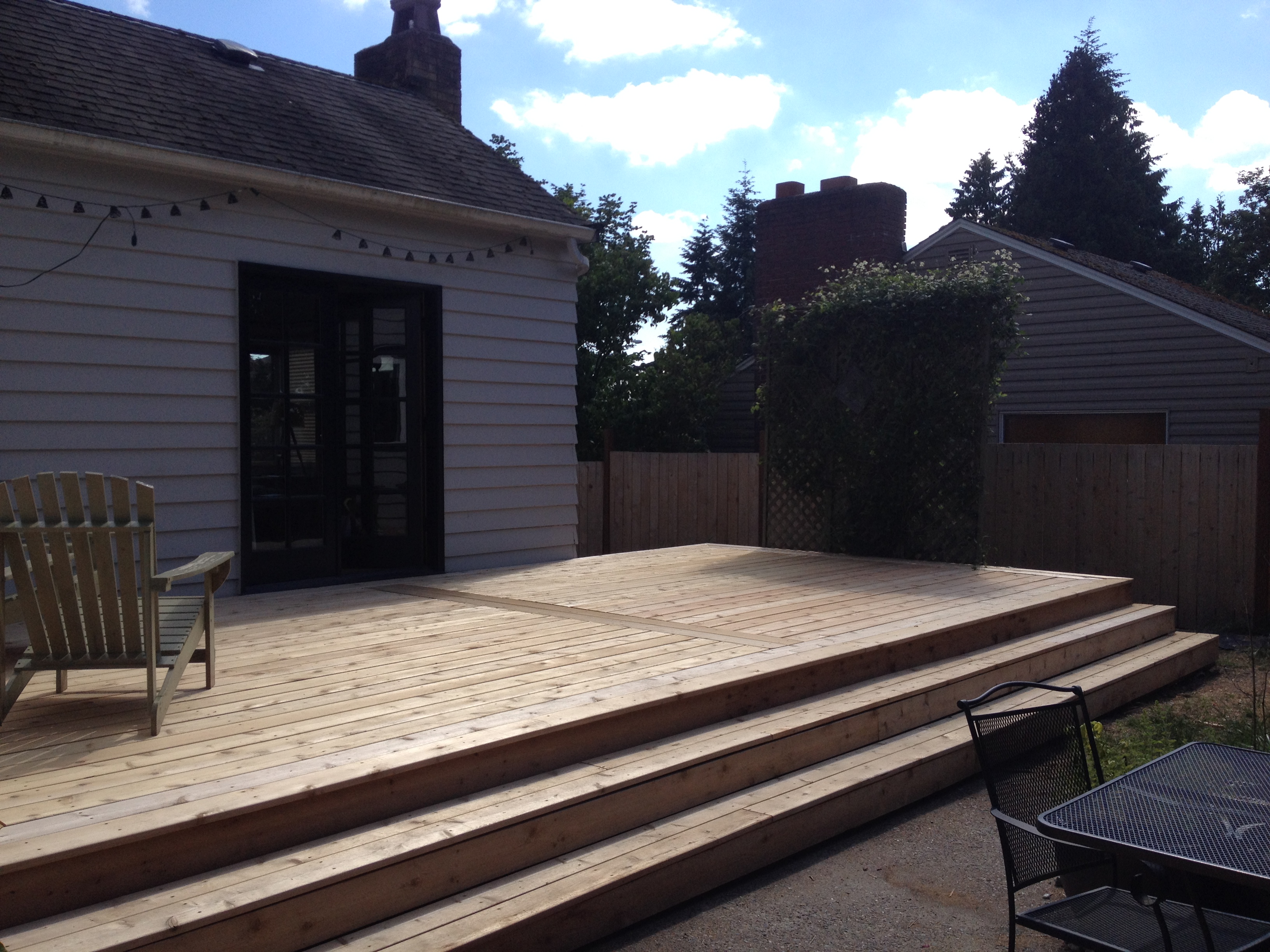 You can see there is a set of stairs that were about 6 feet wide. The rest was just a drop off. We thought it would be really nice to open up the deck to the yard by building stairs the full length of the deck. It would also add some alternative seating.