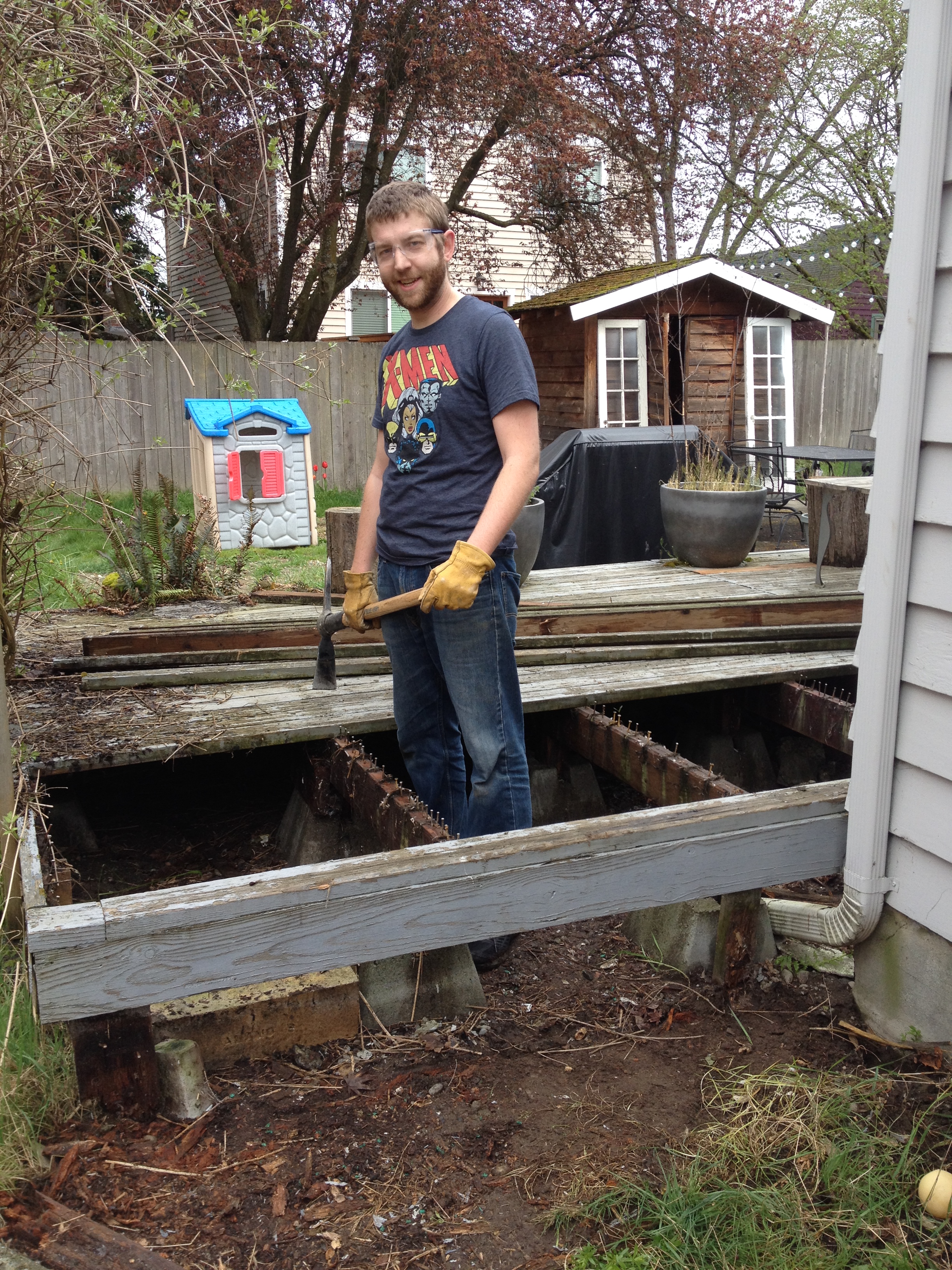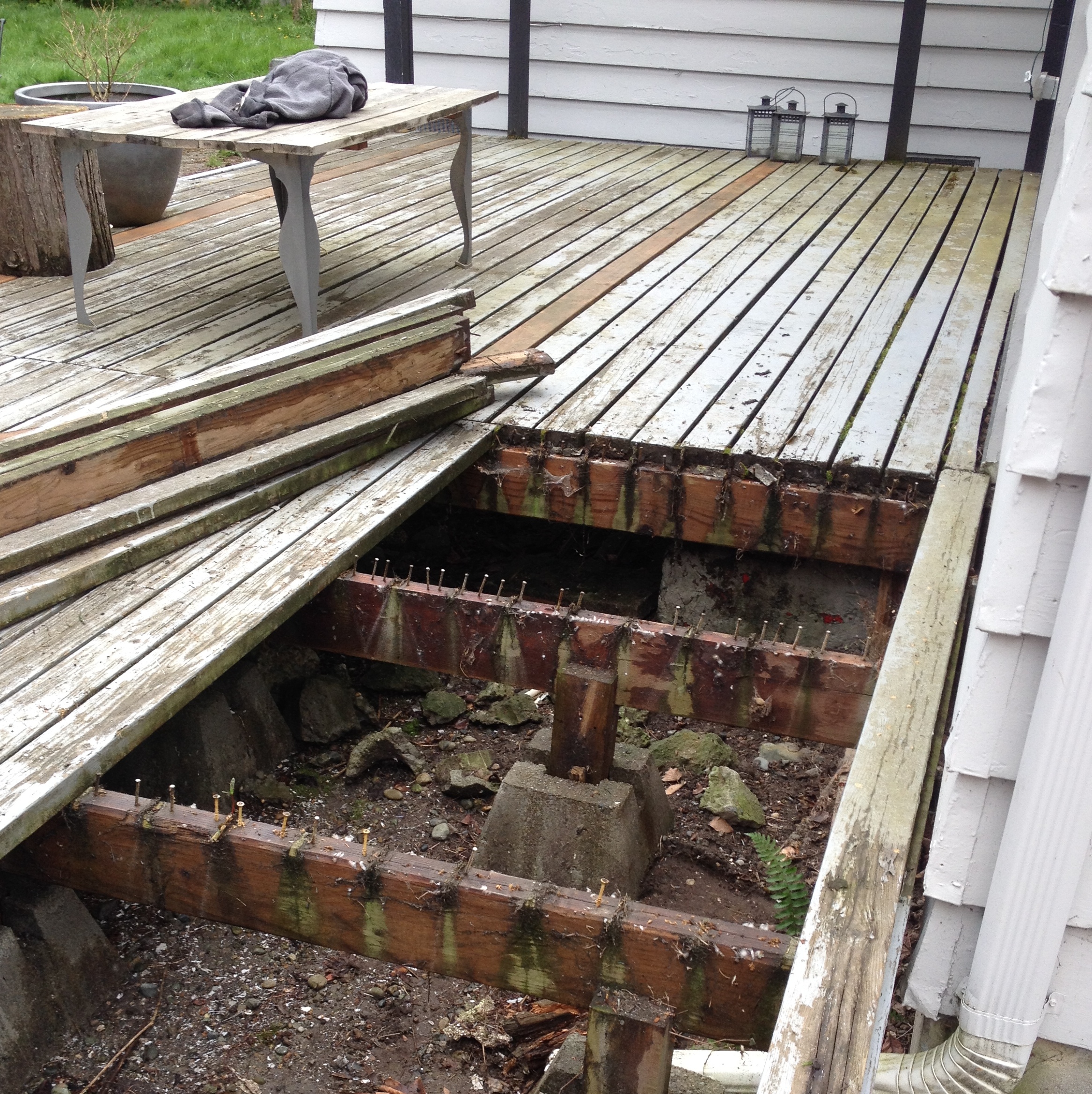 It became obvious pretty quickly that this was going to be full deck overhaul! My favorite was how nothing was really secured down. The posts were just resting on the concrete blocks.