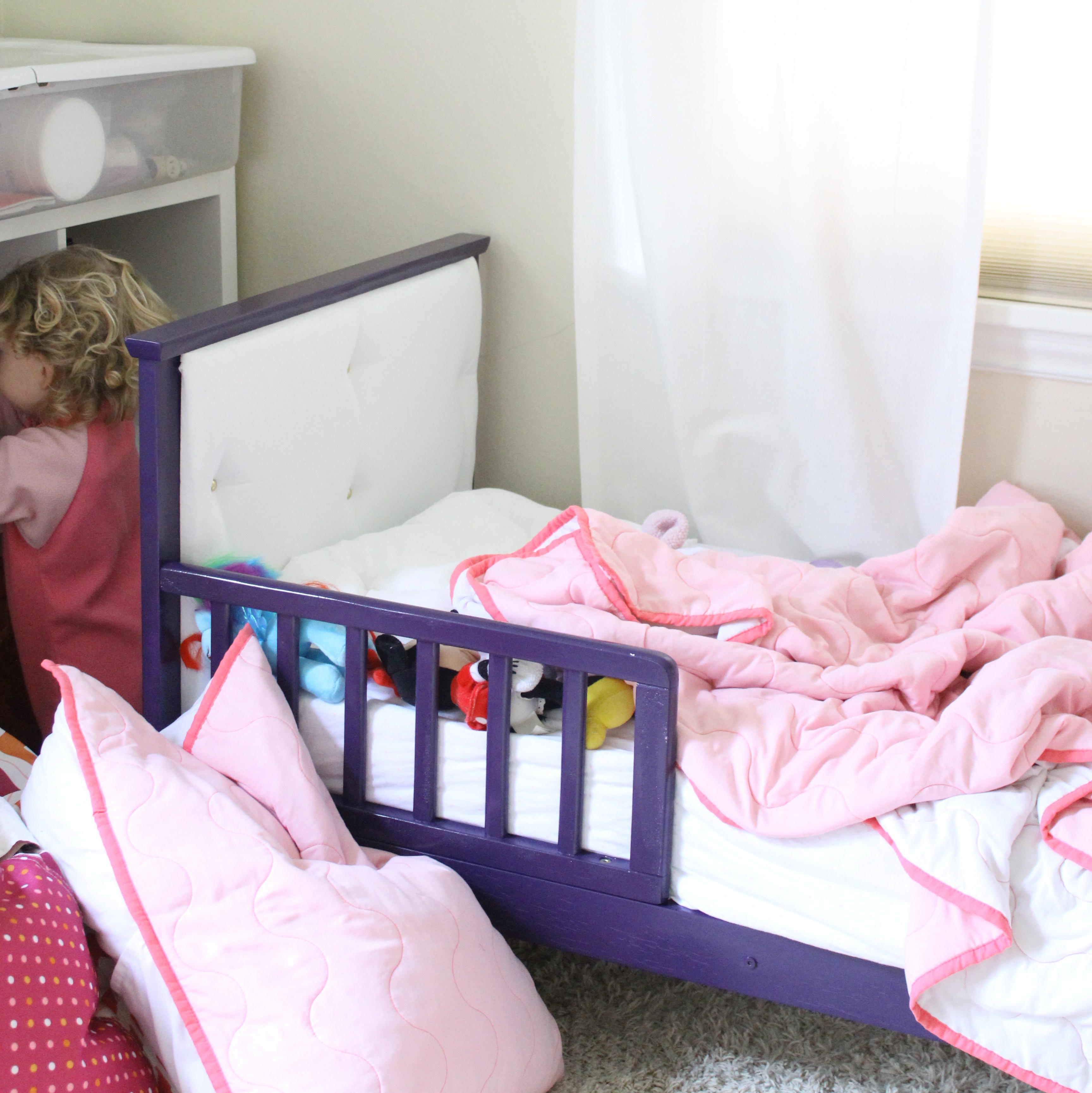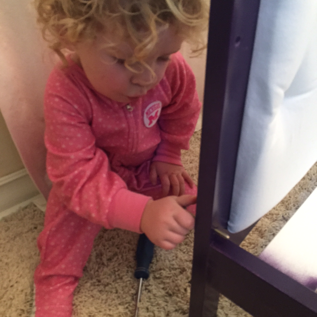 Then we reassembled! Lucy likes to help, of course she chipped the paint, but I just have to be ok with that. Seeing as though it’s a toddler bed, I’m sure it will get much more abuse.